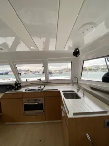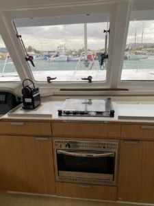 Ten jacht wyposażony jest w grot listwowy, panele słoneczne, bimini oraz zewnętrzny ploter map. Twoją podróż uprzyjemnią system audio, głośniki zewnętrzne oraz flybridge. Pełne wyposażenie kuchni to: kostkarka do lodu, zamrażarka, lodówka, piekarnik oraz kuchenka.